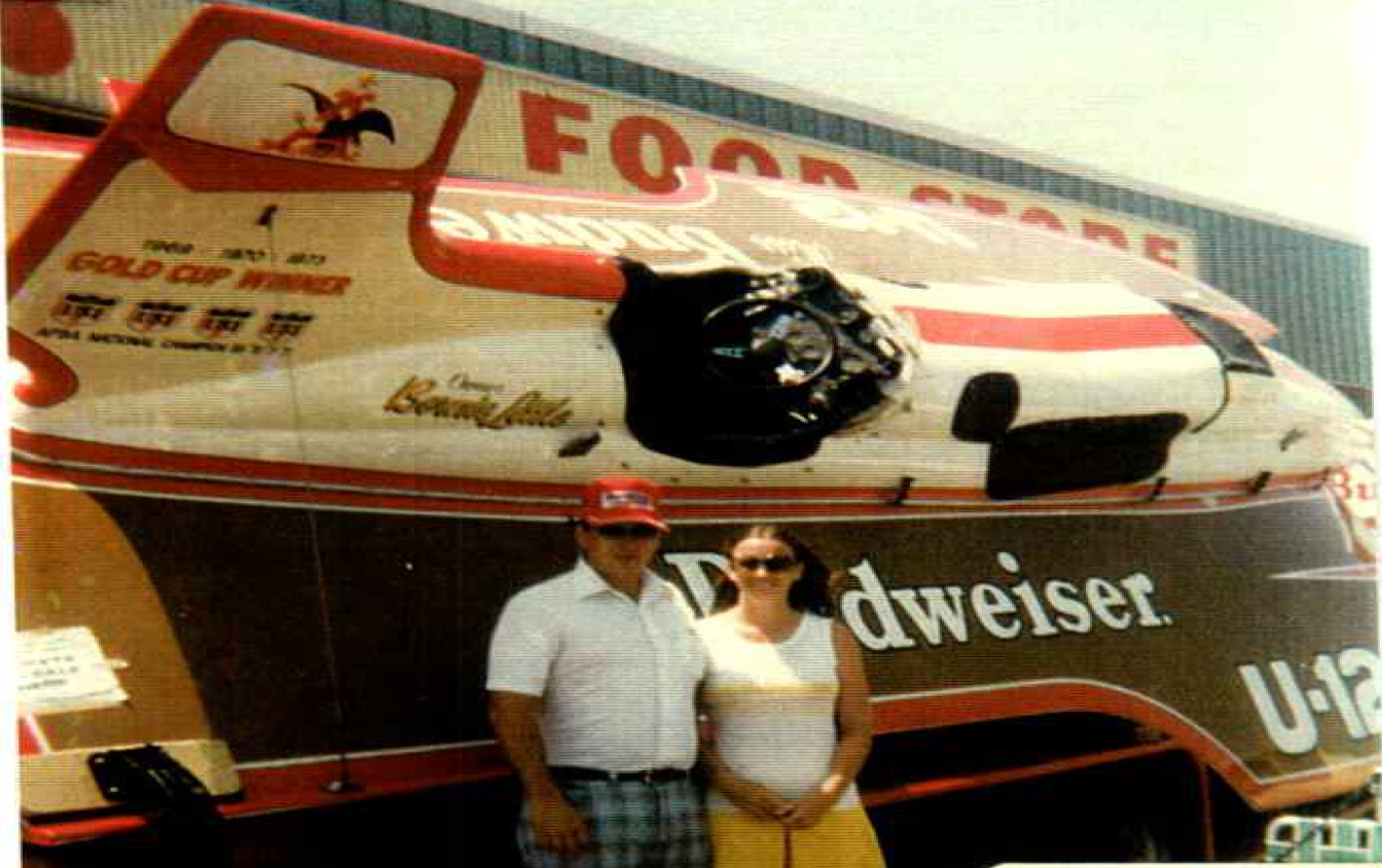 Mike and Patti with Bud Boat at Boogarts in Ark City 1981