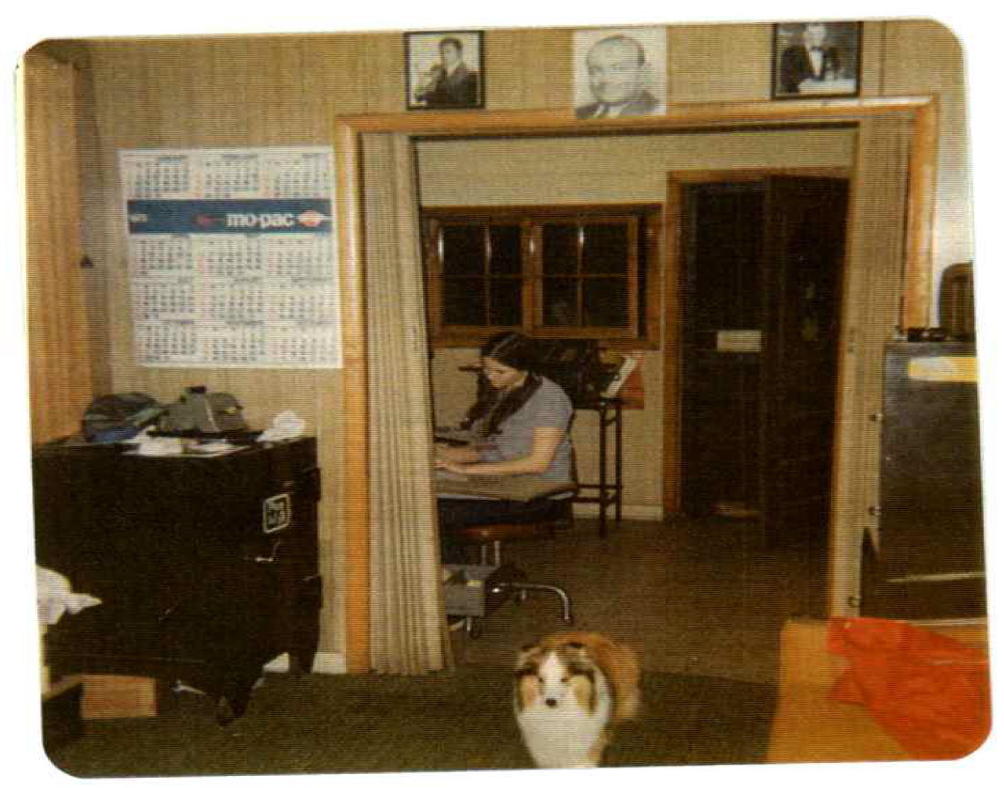 Patti in the office at 1003 W Madison in Arkansas City, KS 1973.